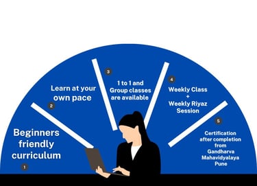 Experience the richness of Hindustani Classical from the comfort of your home, with expert guidance and personalised attention.