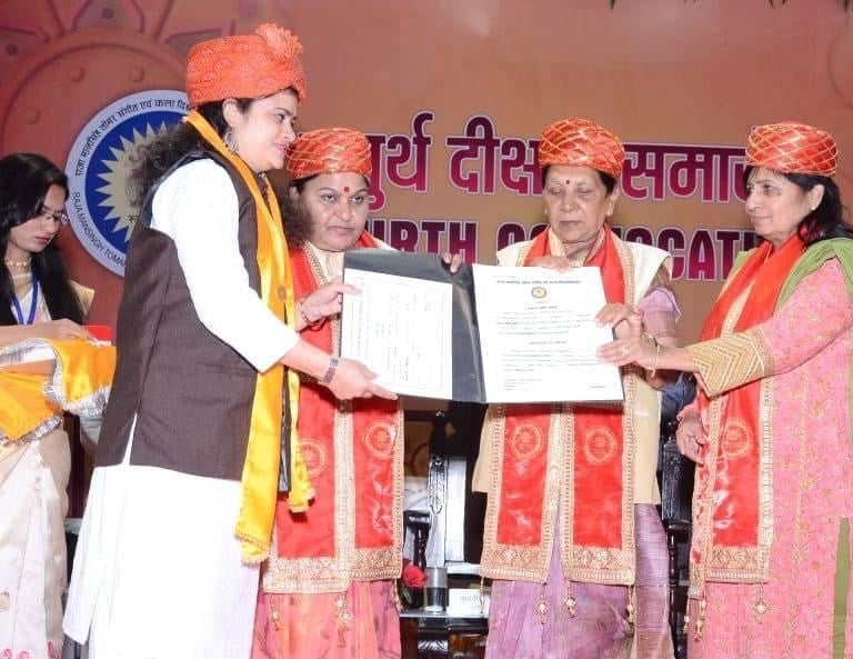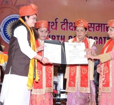 Felicitated by Anandi Ben Patel , Former Governer of Madhya Pradesh